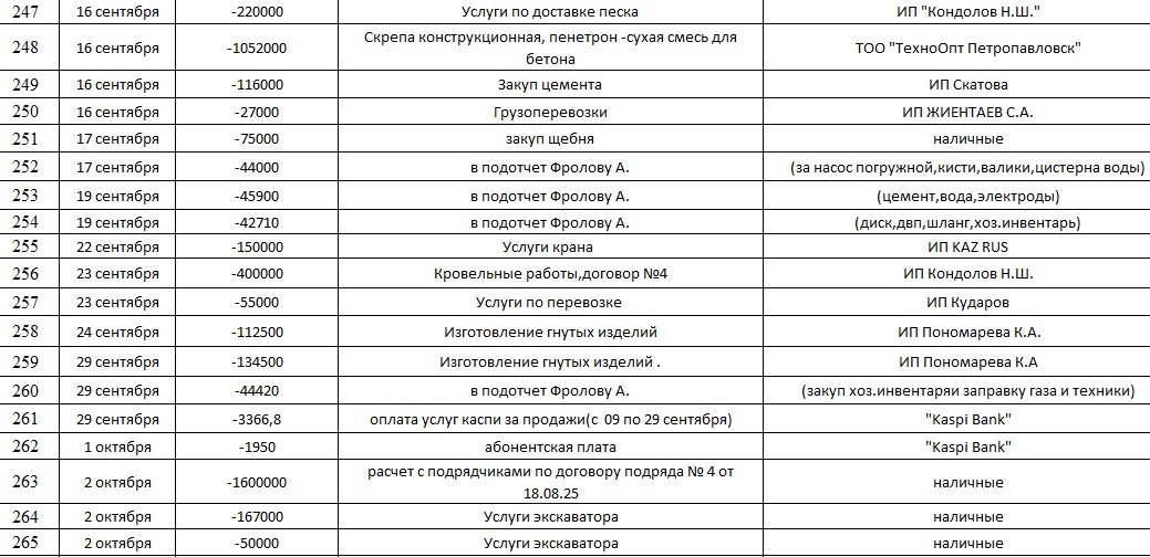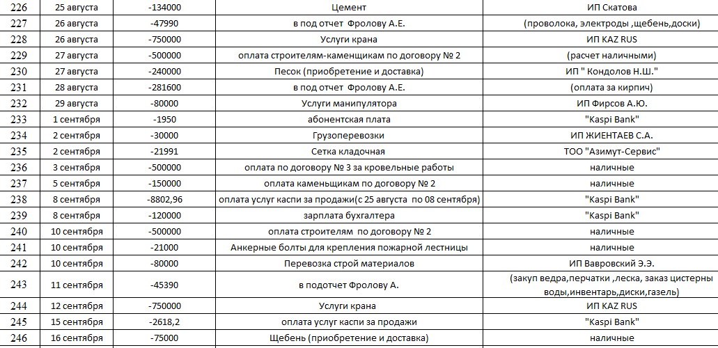 Отчёт о строительстве мечети в селе Смирново Аккайынского района Северо-Казахстанской области. Расходы