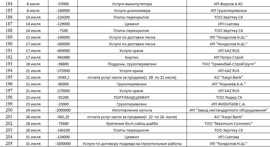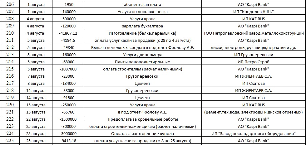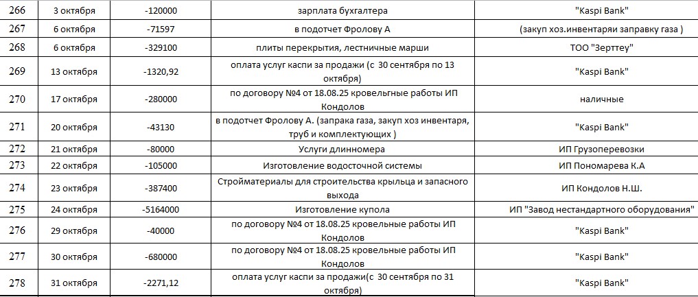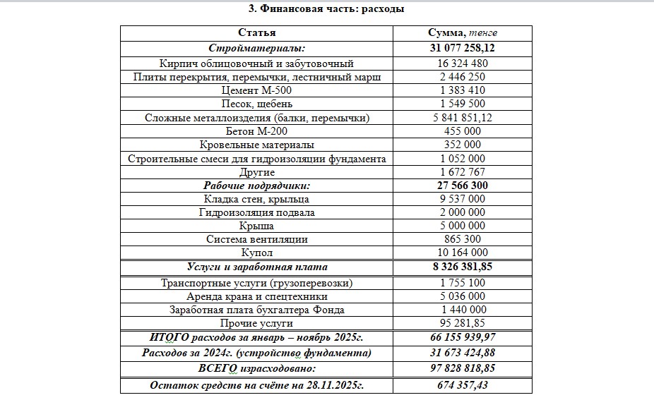 Отчёт о строительстве мечети в селе Смирново Аккайынского района Северо-Казахстанской области. Расходы
